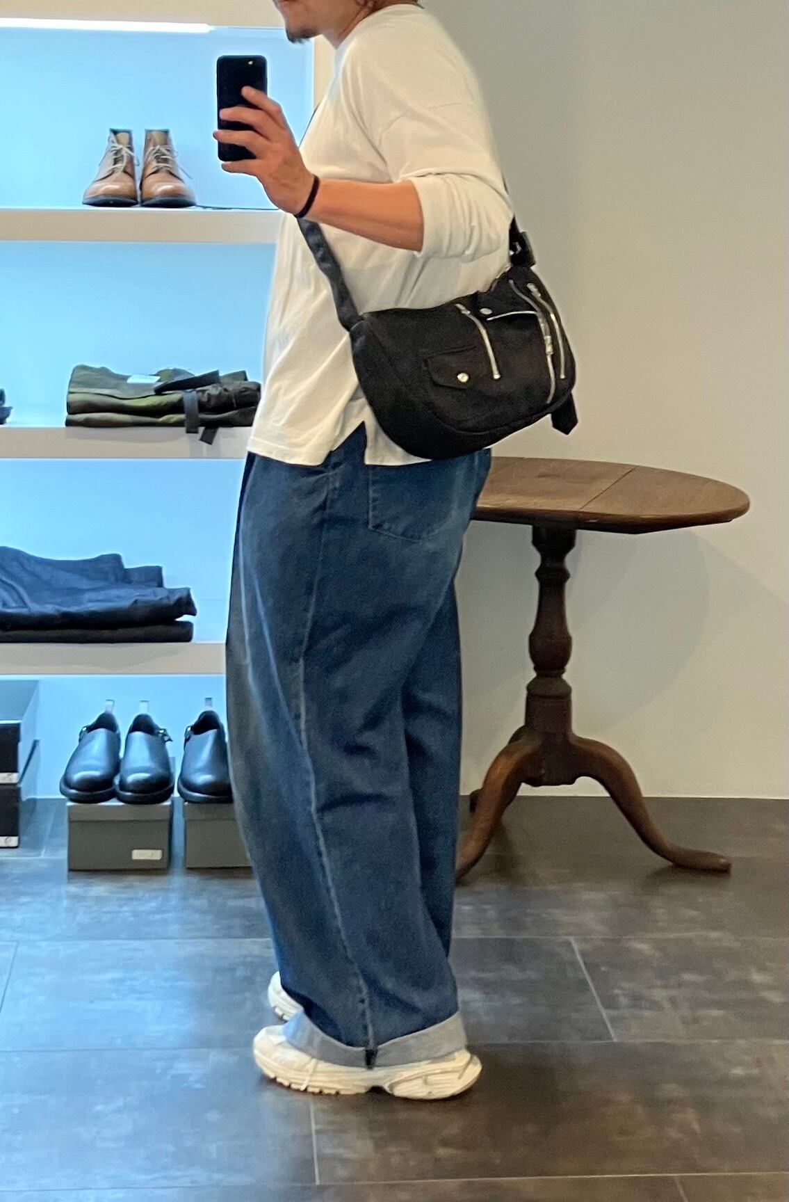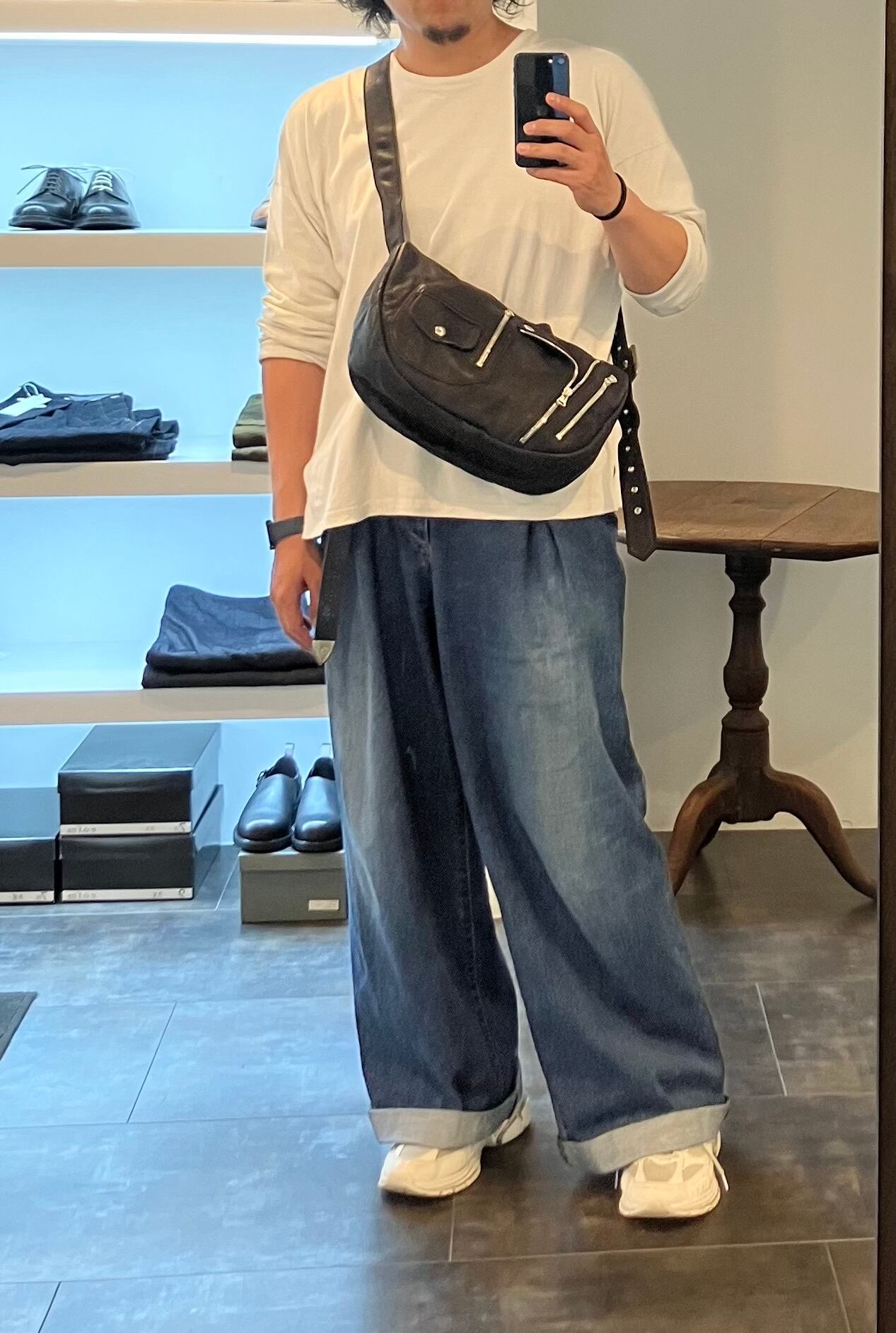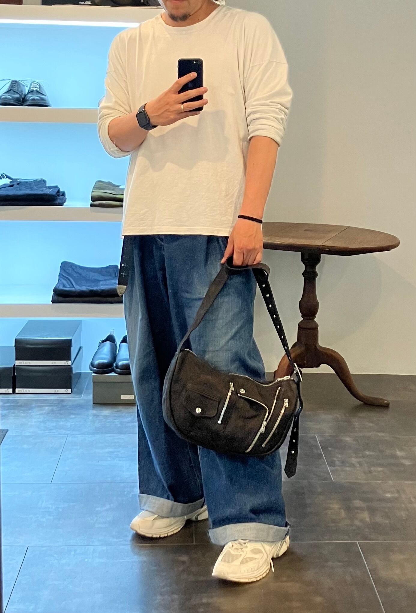 ブランドを代表する通称"バナナバッグ"をベースとした、湾曲した独自の造形による身体へのフィット感が絶妙です。大き過ぎず小さ過ぎない、適度な荷物を収納いただくことが可能なちょうど良いサイズ感になっています。