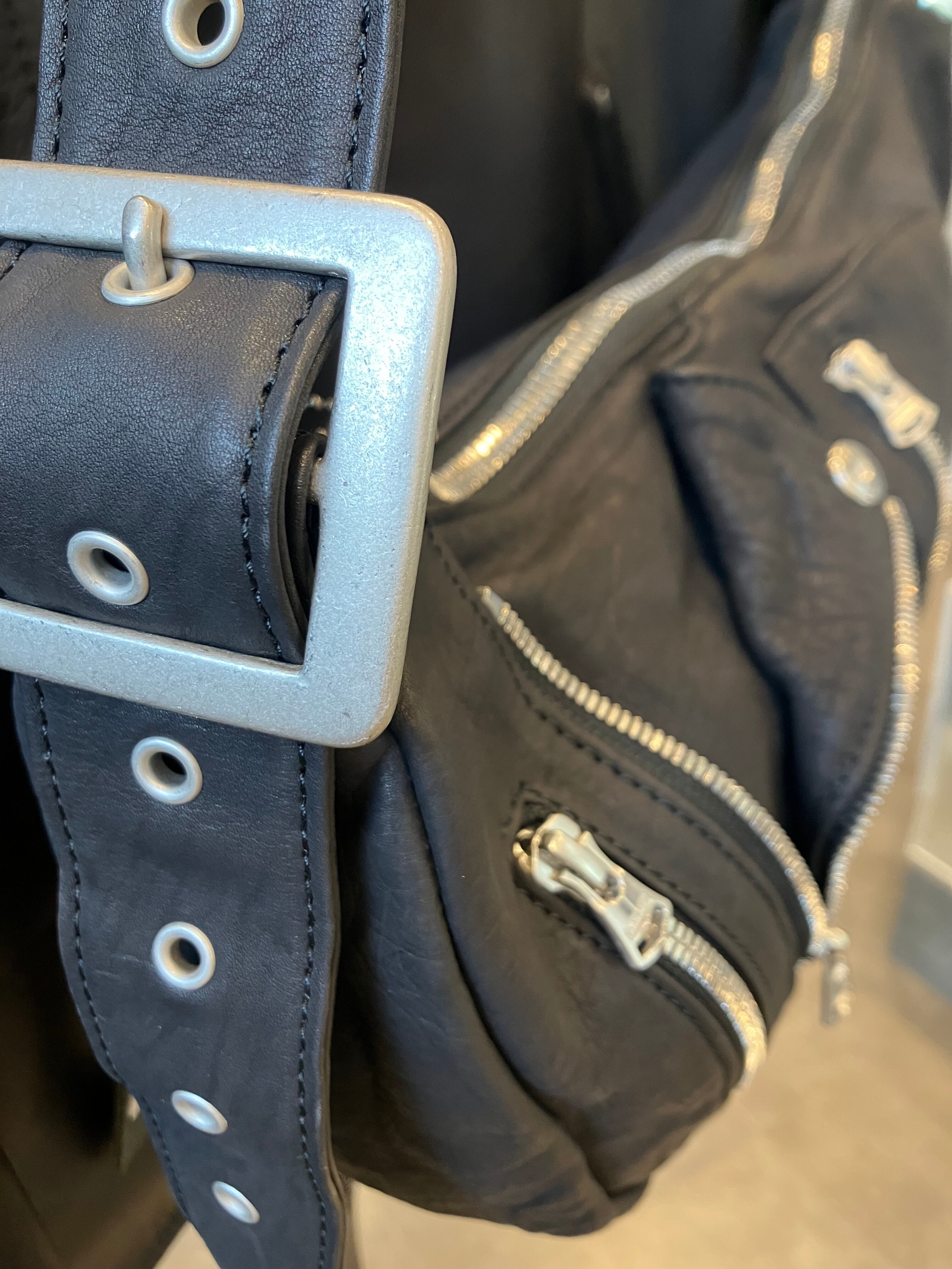 フロントは勿論、バッグ背面に至るまでライダースジャケットをイメージしたデザインを落とし込んでいます。