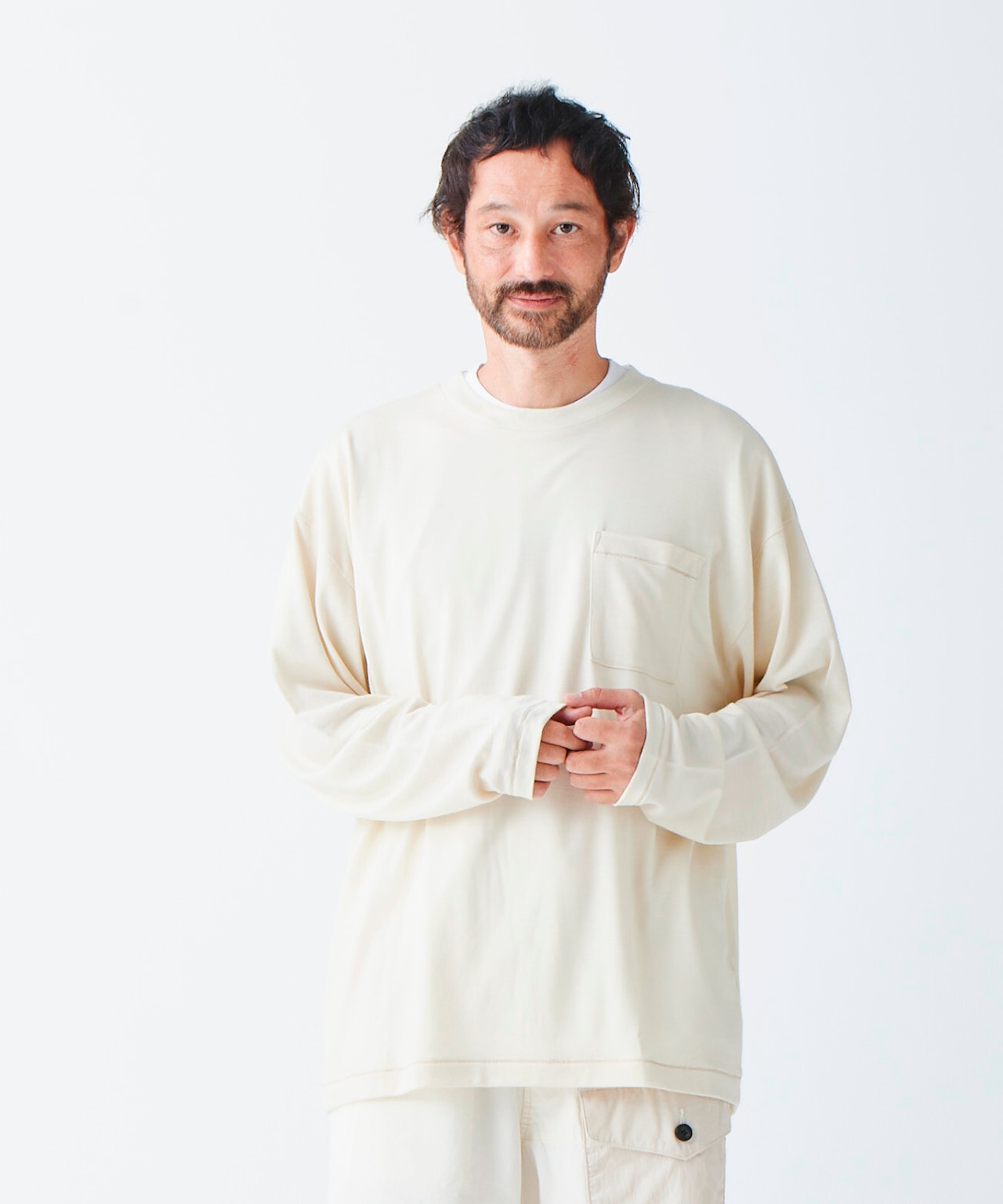 super100’sウォッシャブルウール天竺L/S t-shです。