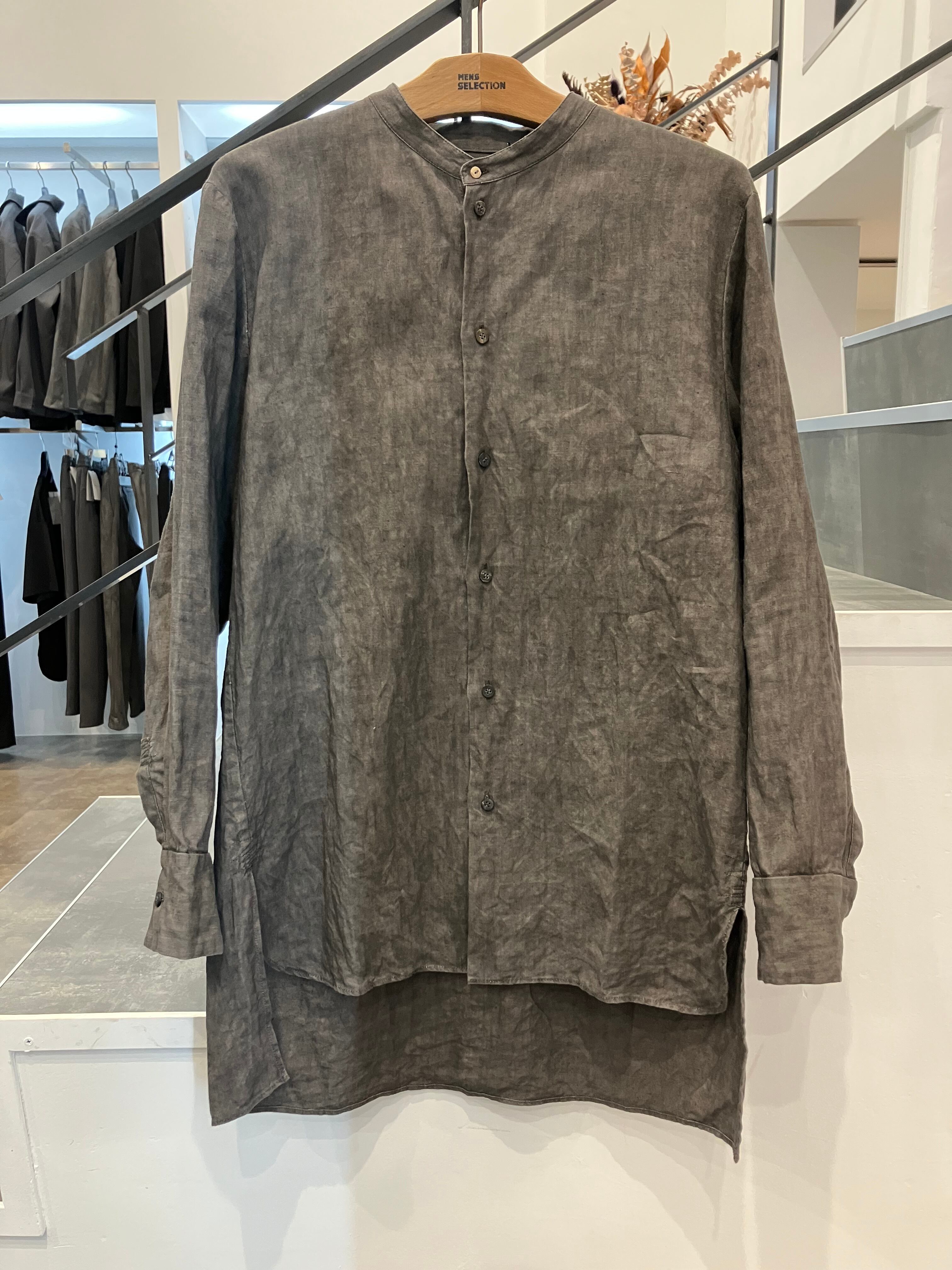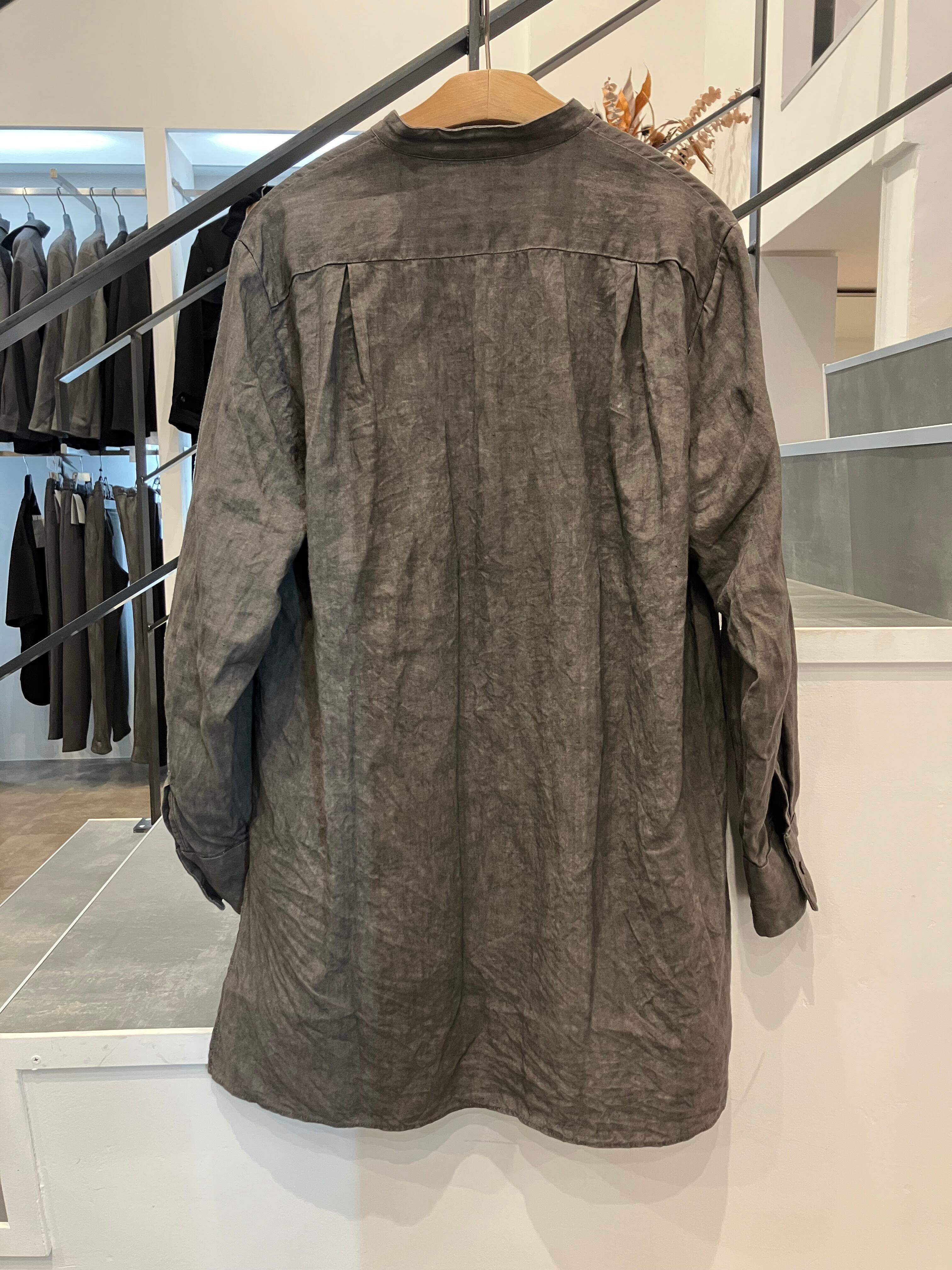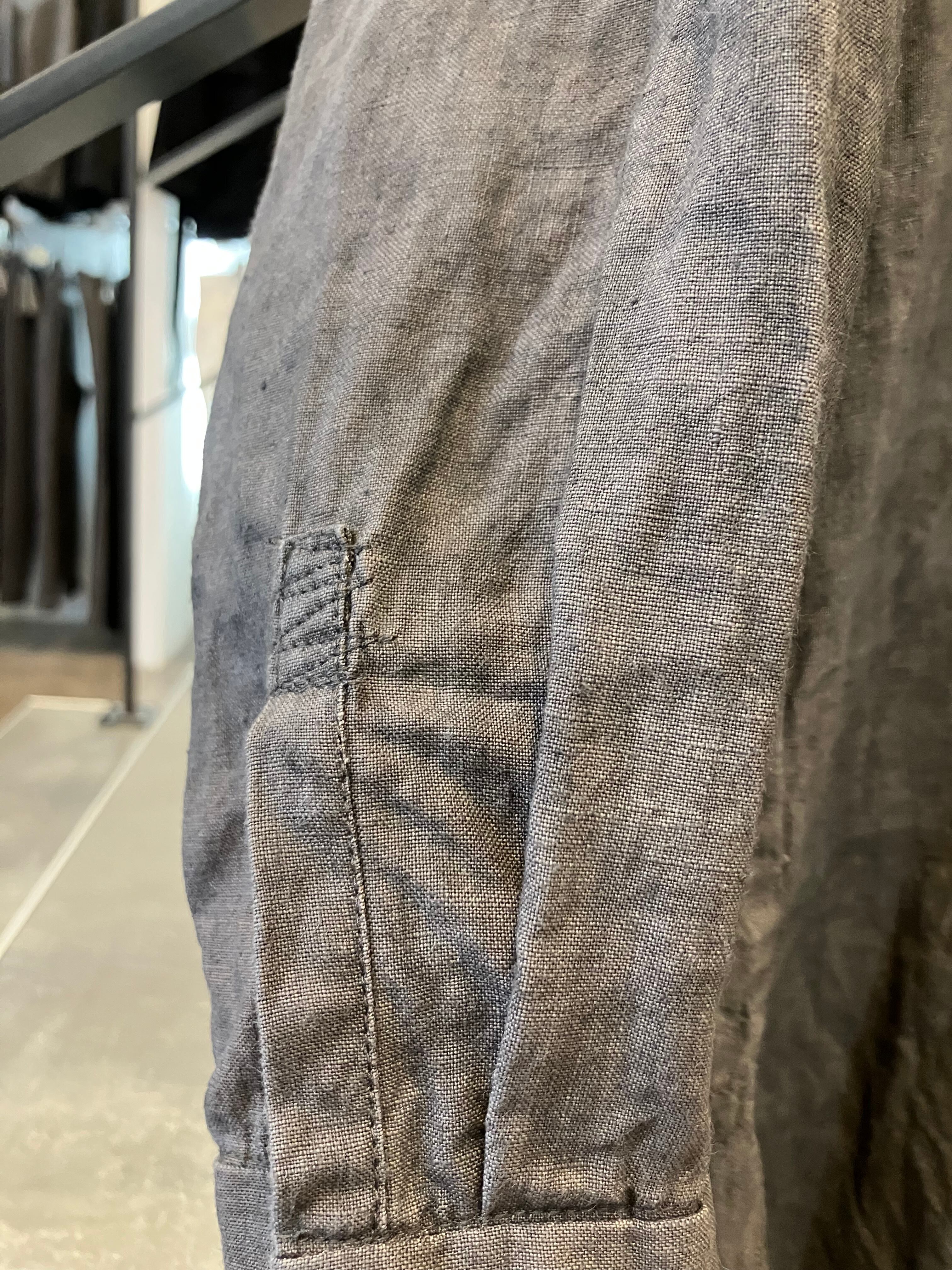 リネン100の生地を墨染めをすることで独特の風合のある表情になりました。